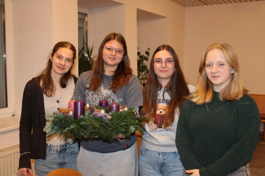 Dijakinje so uživale pletenje adventnega venca, ki sedaj krasi jedilnico v Slomškovi hiši. Preden smo prižgali prvo svečo, smo venec blagoslovili in praznično začeli adventni čas.